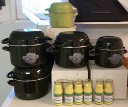 Na de pauze begon de tweede ronde. Deze keer waren de mosselen in wijn gekookt, wat bij de meeste mensen een lichte voorkeur bleek te hebben. We hebben zelfs nog even het liedje “Zeg ken jij de mosselman” gezongen. Hier volgt wat op het internet staat over de oorsprong en hoe het eigenlijk gezongen moet worden: ‘Een kinderliedje dat in 1890 voor het eerst op schrift werd gezet. Kind 1 zingt de eerste strofe, kind 2 antwoordt met de tweede strofe en samen zingen ze de derde strofe. Daarna zingt kind 2 de eerste strofe, antwoordt kind 3 en zingen ze met zijn drieën de derde strofe.’ Zo uitvoerig hebben we het niet gezongen. Het was leuk en toepasselijk om het even tijdens een mosseldag te zingen, maar het is echt een liedje van vroeger, voor in de bus tijdens een schoolreisje.