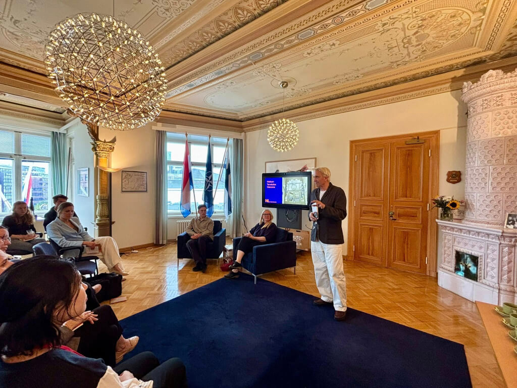 Nederland was wederom vertegenwoordigd tijdens de Helsinki Design Week (HDW). Dit jaarlijkse designfestival vond plaats van 5 tot 14 september. Op kantoor bij de ambassade vond het Design Diplomacy evenement plaats. In verband met de renovatiewerkzaamheden in de residentie kon het evenement dit jaar niet daar plaatsvinden. Met een beetje passen en meten en het verplaatsen van tafels en bureaus, bleek ook kantoor een prima locatie voor het evenement. De mogelijkheid om aan te melden was open voor iedereen en het evenement was binnen een mum van tijd volgeboekt. Het concept van het evenement is dat een Nederlandse designer en een Finse designer aan de hand van een kaartspel met vragen met elkaar in gesprek gaan. Soms komt er een blanco kaart en dat is het moment voor het publiek om hun vraag te stellen. Dit concept werd jaren geleden door de HDW geïntroduceerd en de ambassade was destijds de eerste ambassade die hieraan deelnam.